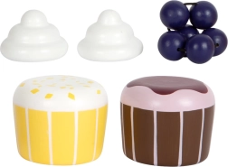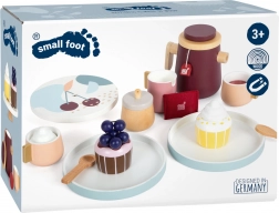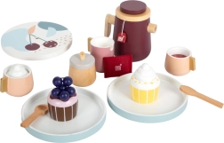 Ez a teás és kávés készlet ideális kiegészítő a gyerekkonyhába, új dimenziókat adva a játéknak. Tartalmaz csészéket, tányérokat, kanalakat, cukortartót, tejeskancsót, kancsót és sok más dolgot, beleértve dekoratív muffinokat és tejszínt. A termék jellemzői: