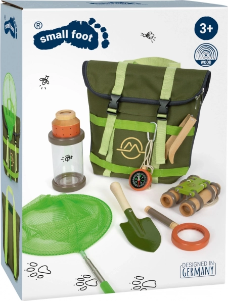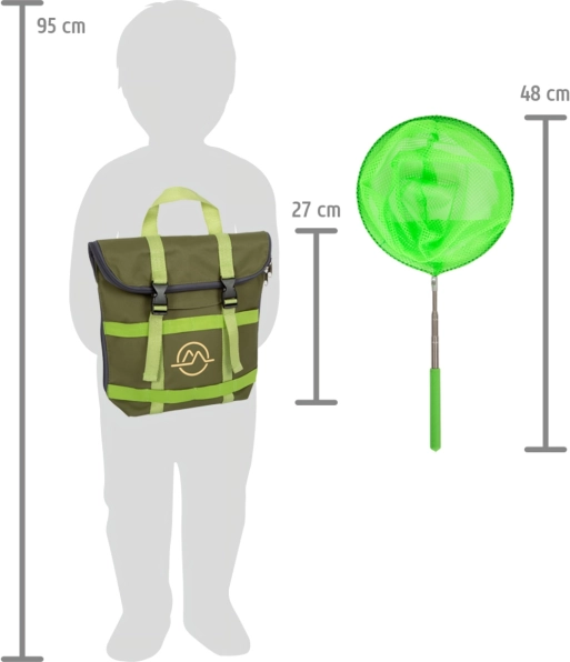 Ez a tartós hátizsák ideális a kis kalandorok számára, akik szeretnék felfedezni a természetet. Olyan tartalmakkal, mint például rovargyűjtő edény, iránytű, nagyító, és további kellékek, a gyerekek készen állnak minden kalandra.