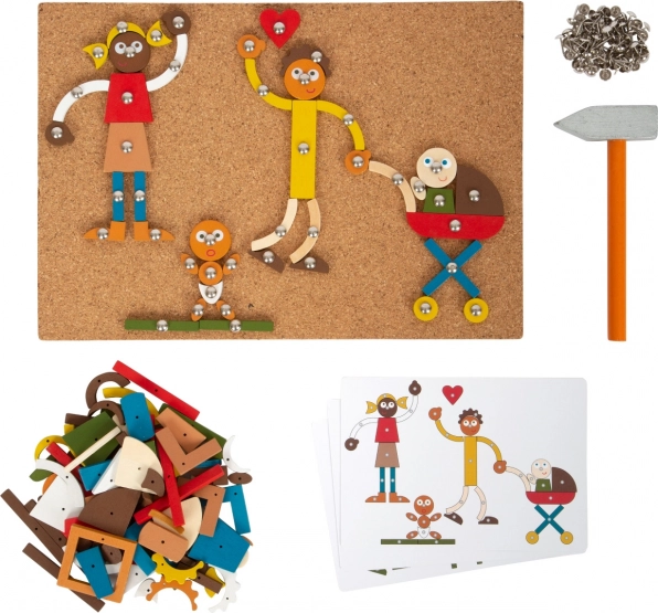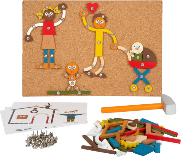 Ez a kalapálós játék a Small Foot-tól remek szórakozást nyújt, kombinálva a gyermekek kreativitásának és motorikai képességeinek fejlesztését. A gyerekek különféle képeket rakhatnak össze akár hat mintalap alapján, vagy saját fantáziájuk szerint. A modern színeknek és tartós anyagoknak köszönhetően a játék vonzó a kis művészek számára is.