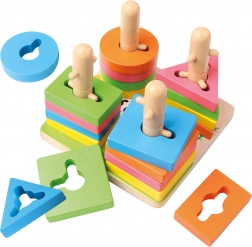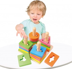 A játék ideális első lépés a logikus gondolkodás felé – a gyerekeknek a kivágásokat kell igazítaniuk és helyesen felfűzniük a formákat. A tartós fa kivitel és a sima élek biztonságot és hosszú élettartamot nyújtanak. Remek választás önálló játékhoz és közös tanuláshoz a szülőkkel.