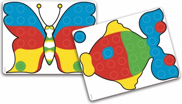 A nagy, színes szegecsek könnyen megfoghatók, fejlesztik a finommotorikát, a kéz–szem koordinációt és a színfelismerést.