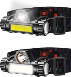 Kiváló minőségű anyagból, alumíniumból és ABS-ből készült, ezért ellenálló a mechanikai sérülésekkel szemben. Két világítási módot biztosít valamint COB LED és CREE panel világítást. A beépített akkumulátornak köszönhetően, ami USB porton keresztül tölthető, szabad mozgást biztosít.