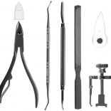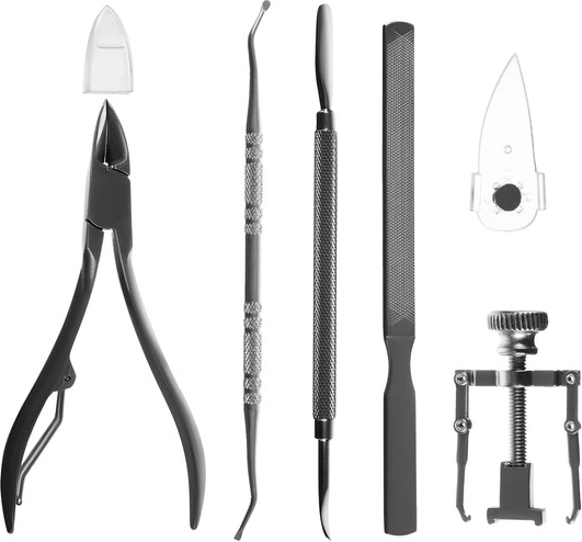 - Teljes eszközkészlet – reszelő, védőpajzs, bőr feltoló, körömolló, korrektor és emelő.