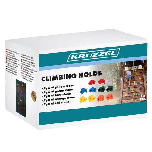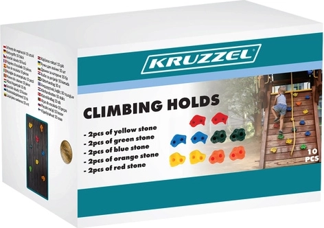 Alkossanak a gyerekeknek saját mászófalat a minőségi KRUZZEL fogásokkal. A készlet 10 darab, tartós, élénk színű fogást és teljes szerelési tartozékot tartalmaz. A kétcsavaros rögzítésnek köszönhetően a fogások stabilak, nem fordulnak el. A felület csúszásmentes, a formák és méretek változatosak a biztos fogás és a motorika fejlesztése érdekében. Ideális kertbe, játszóterekre és otthoni mászófalakhoz.