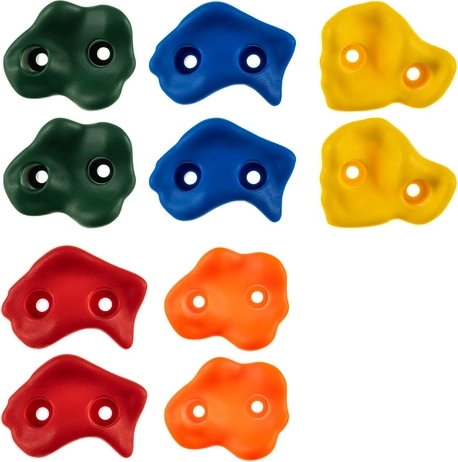 Bővítse a játszóteret biztonságos és tartós mászófogásokkal, amelyek mozgásra és szabadban végzett játékra ösztönöznek. A 10 darabos készlet kontrasztos színekben (piros, sárga, zöld, kék, narancs) megkönnyíti az útvonaltervezést és támogatja a vizuális tájékozódást.