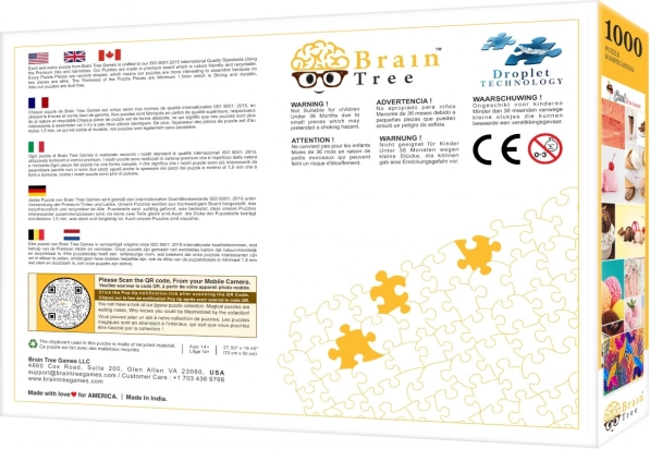 A csomag mindent tartalmaz a kényelmes kirakáshoz: a puzzleképhez azonos minőségű poszter, több karton válogatórekesz, fedélállvány a jobb átláthatóságért, és az 1000 darabos készletnél strapabíró, cipzáras tasak a darabok biztonságos tárolásához.