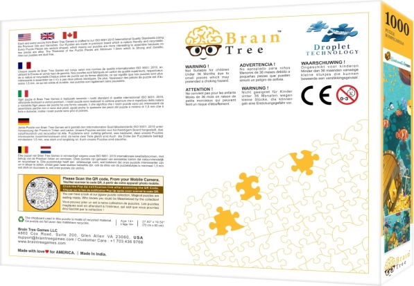 Fedezze fel a színekben és titkokban gazdag víz alatti világot a BRAIN TREE 1000 darabos kirakójával. A matt felületnek, a precíz, véletlenszerű formájú kivágásnak és a praktikus kiegészítőknek köszönhetően kényelmes kirakást élvezhet, élesen látható részletekkel és hosszú élettartammal.