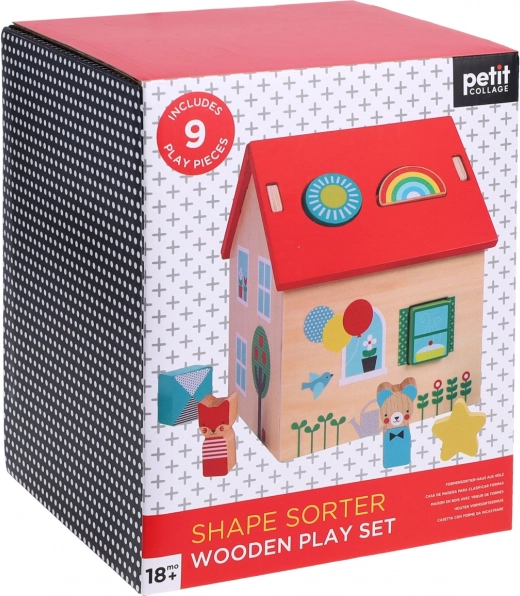 A PETIT COLLAGE bájos fa házikója okos játék a legkisebbeknek: 9 színes állat és forma bedobása. Támogatja az alakfelismerést, a finommotorikát és a szenzomotoros fejlődést. A tető könnyen levehető, így belül is lehet játszani. 100% FSC® fából készült – masszív és tartós kivitel, kíméletes a természethez.
