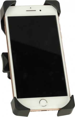 A négy sarokfogó és a strapabíró műanyagból készült stabil szerkezet egyenetlen terepen is a helyén tartja az eszközt. A széles kompatibilitás (kb. 12 × 6 cm-től 18 × 9 cm-ig) lefedi a legtöbb okostelefont és kompakt navigációt.