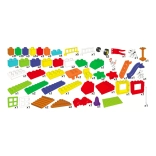A sok alkatrész széles lehetőséget kínál a gyerekeknek házikók, egyszerű járművek és farmjelenetek építésére.
