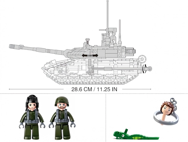 Ez a részletes T-90 tank építőkészlet a Sluban Model Bricks sorozatból élethű megjelenést és kiváló játszhatóságot kínál. A minőségi ABS műanyagból készült robusztus felépítésnek és a kidolgozott elemeknek köszönhetően hosszú órákon át élvezheti az építést és az akciódús játékot.