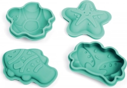 A készlet négy különféle szilikon formát tartalmaz rák, hal, tengeri csillag és teknős alakban, gyermekei maximális kreativitásához.