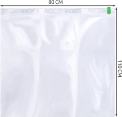A 60 × 80 cm-es vákuumzsák azonnal csökkenti az eltett dolgok térfogatát, és helyet szabadít fel a szekrényben, bőröndben vagy komódban. Az átlátszó kivitel megkönnyíti a tájékozódást, a strapabíró anyag és a megbízható szelep pedig a teljes tárolási idő alatt kint tartja a levegőt.