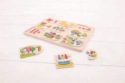 Kis kíváncsi gyermekeid biztosan imádni fogják ezt a kicsi, érdekes és okos puzzle-t. Nemcsak az fogja őket szórakoztatni, hogy a darabokat a megfelelő helyre rendezik, hanem önmagukban is behelyezhetik a képeket, majd azokhoz párosíthatják a megfelelő számokat. A fa kirakó minden darabja úgy van méretezve, hogy megkönnyítse a felemelést és a megfogást a kisgyermek kezecskéjében. A puzzle elemei képekkel vagy színekkel vannak nyomtatva, amelyek segítik a tanulási folyamatot és növelik az oktatási értéket. Remek módja a kézügyesség, az alakfelismerés, a koncentráció és a számolás fejlesztésének már egészen kicsi kortól. Főbb jellemzők: kiváló minőségű, felelős forrásból származó anyagokból készül, megfelel a jelenlegi európai biztonsági szabványoknak.