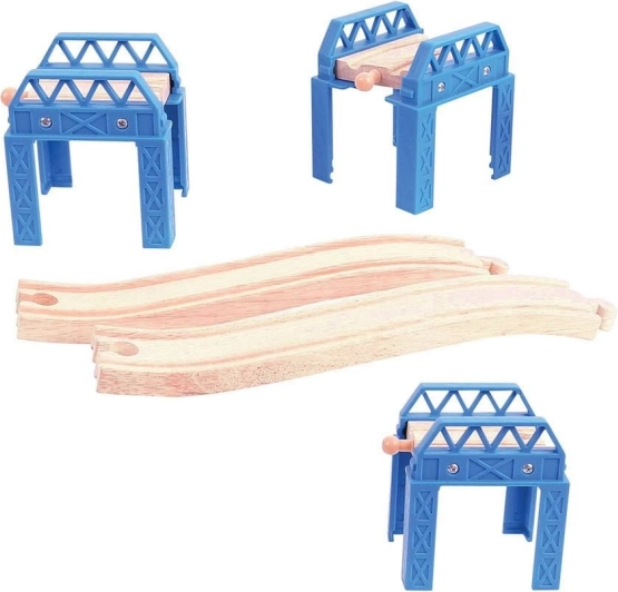 Élvezze a szórakozást a Bigjigs Rail hídszerkezetével. Ez a termék lehetővé teszi a fiatal építők számára, hogy álmodjanak és összetett hídstruktúrákat hozzanak létre vonatpályáik számára. A készlet három emelt darabot és lejtős pályákat tartalmaz, amelyek érdekes és változatos építési lehetőségeket kínálnak.