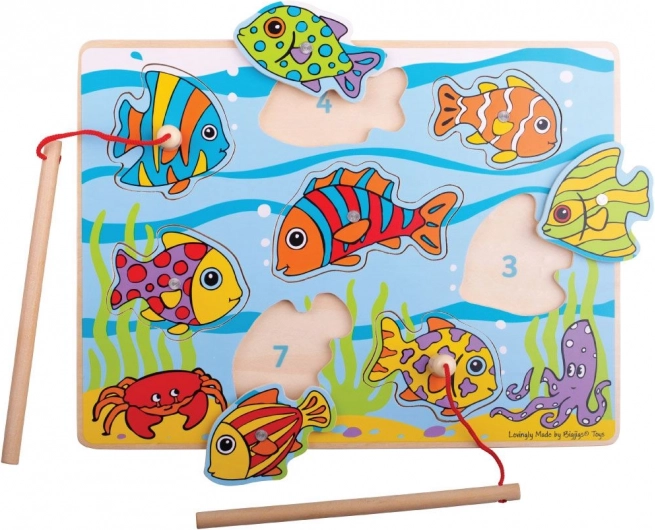 A Bigjigs Toys mágneses horgászat játéka ideális elfoglaltság 10 hónapos kortól. A gyerekek a mágneses bottal halacskákat fognak, majd visszahelyezik őket a megfelelő formanyílásokba. A játék természetes módon fejleszti a türelmet, a logikus gondolkodást és a mozdulatok pontosságát.