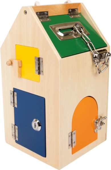 U-lakat, hengerzár, lánc, pántok és más mechanizmusok tanítják a gyerekeket türelemre, logikára és az ujjak pontos mozgatására.