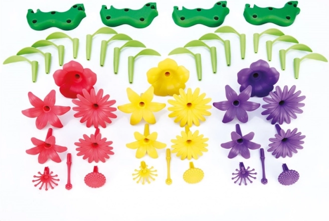 Az egymással felcserélhető elemeknek köszönhetően a gyerekek végtelen variációt alkothatnak virágokból, szárakból és levelekből. Minden kompozíció egyedi, és támogatja a fantáziát valamint a finommotorikát.