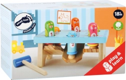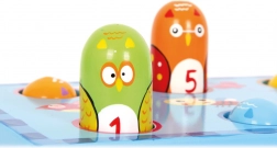 • Egyszerű mechanizmus, ahol a gyerekek az egyik oldalon kalapálják be a madarakat, a másik oldalon pedig ismét megjelennek.
