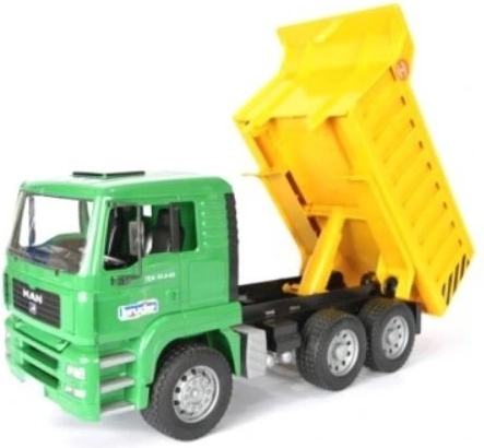 A teljesen funkcionális, műanyagból készült BRUDER MAN billenő teherautó 1:16 méretarányban remek választás minden gyermeknek, aki szereti az építkezéseket és a valósághű játékot. A fülke felhajtható, így láthatóvá válik a részletesen kidolgozott motor, a külső tükrök felhajthatók, a plató pedig könnyen megemelhető az ömlesztett anyagok kirakodásához.