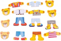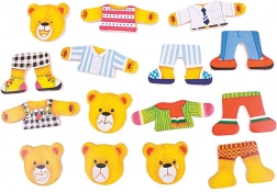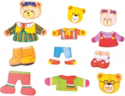 Öltöztesd fel Mackó urat, Mackónét és két bocsukat a legkülönfélébb szettekbe, és fedezzétek fel az érzelmeket a cserélhető, különböző arckifejezéseket ábrázoló fejekkel. A fa elemek kellemes tapintásúak, könnyen összeilleszthetők, és támogatják a kreatív játékot, a játékos tanulást.