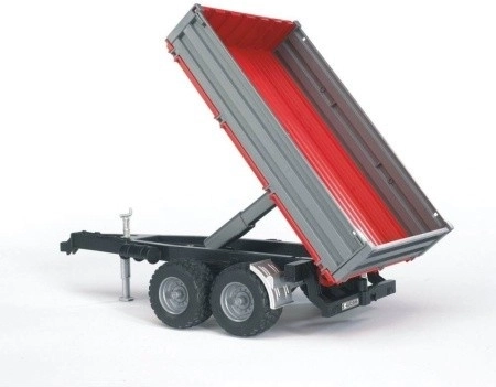 Bruder billenő pótkocsi piros egy hű mása a kéttengelyes pótkocsinak, amely életre kelti bármely játékjelenetet. Fő előnye a billenő rakfelület és a nyitható oldalsó és hátsó panelek, amelyek megkönnyítik a rakomány kezelését.