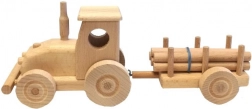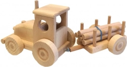 Fedezze fel a szépséget és az egyszerűséget ebben a gondosan megmunkált fa traktorban utánfutóval. Simára csiszolt felülete természetes ékességet hoz otthonába. A traktor masszív, éles szélek nélkül, ezáltal biztonságos választás 3 éves kortól. Precíz kialakítása és mozgatható elemei növelik a vonzerejét és interakciót játék közben. Ez a termék nemcsak tartós, de vonzó is a kreatív játékhoz, legyen az otthon vagy homokozóban.