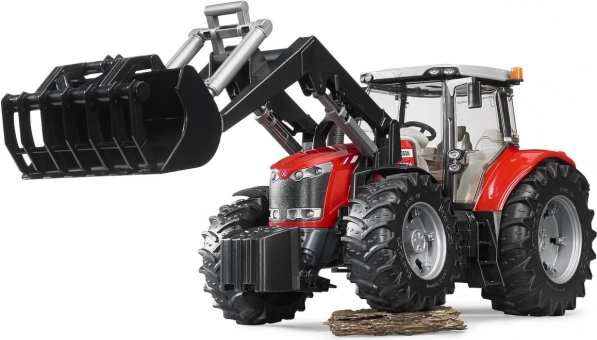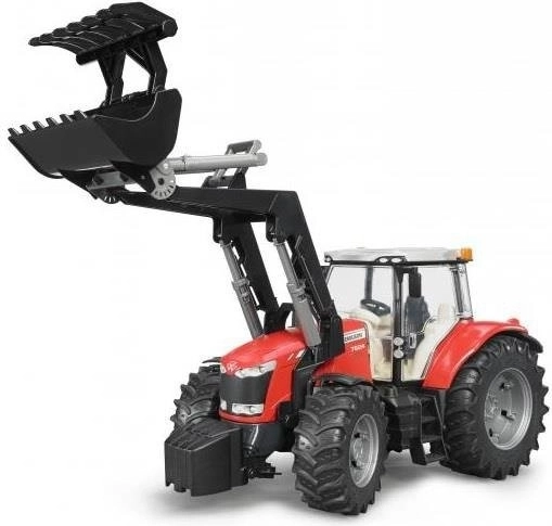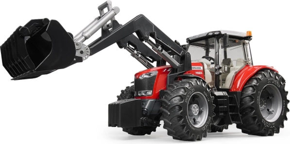 Bruder Massey Ferguson 7624 traktor elülső rakodóval a híres mezőgazdasági gép hű másolata. Ez a modell minőségi ABS műanyagból és polikarbonátból készült, ami garantálja a hosszú élettartamot és tartósságot játék közben. A traktor fő jellemzői: