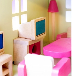 Ez a fa babaház bútor készlet ideális megoldás minden kis belsőépítész számára. A készlet tartalmaz mindent, ami a konyha, nappali, hálószoba, fürdőszoba és még a tetőtér berendezéséhez szükséges.
