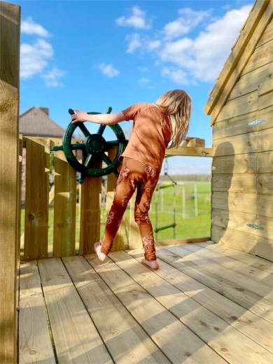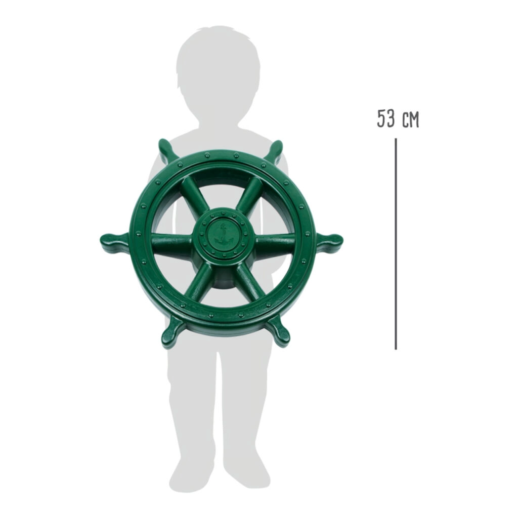 Változtasson bármely sarkot kalózhajó fedélzetévé! A 53 cm átmérőjű Jumbo gyerekkormány azonnal magára vonja a figyelmet, és a forgatáskor megszólaló hanghatás játékra csábítja a gyerekeket. Remek választás kertbe, játszótérre, mászókára és a gyerekszobába egyaránt.