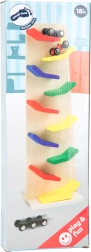 Ez a minőségi fa kaszkád torony végtelen mennyiségű akciódús játékot kínál a gyerekeknek. Csak helyezd a kis csuklós autót a tetejére, és figyeld, ahogy a rámpákon lefelé gurulva jellegzetes „klap-klap” hangot ad. A játék fejleszti a látást, a hallást és a kéz–szem koordinációt.