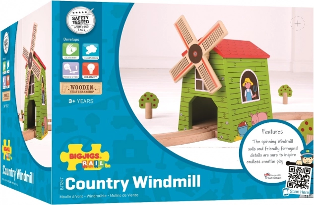 A Bigjigs Rail fa szélmalom stílusos, farm hangulatú játéksarokká varázsol minden pályát. A gyerekek a malmon át vezethetik a vonatot és megpörgethetik a lapátokat – szórakozás, amely természetes módon támogatja a szem–kéz koordinációt és a kreatív történetmesélést. A masszív fa kivitel és az élénk színek újra meg újra játékra hívnak.