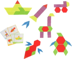 A gyermekek összeállíthatják a mellékelt kártyák alapján vagy saját mintákat is kitalálhatnak, ami növeli a képzeletüket. A praktikus tárolózsáknak köszönhetően a kirakó könnyen hordozható, így bárhová magával viheti.