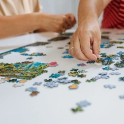 A puzzle papírkartonból készült kalanderpapírral és környezetbarát élelmiszerfestékekkel.