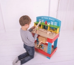 Fejlessze gyermeke kézügyességét ezzel a klasszikus fa munkapaddal! Ez a játék ideális választás, hogy a kicsik játék közben gyakorolják az apró mozdulatokat és fejlesszék manuális készségeiket.