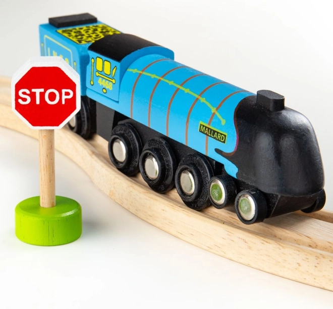 Élvezze a korlátlan szórakozást a Mallard mozdony fából készült replikájával, amely minőségi, természetes anyagokból készült. A mágneses rendszernek köszönhetően könnyedén összekapcsolható más vagonokkal.