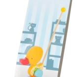 Aranyos kacsa színesre festett fából, amely tologatásra billeg a lábain. Támogatja a gyerekeket a járás tanulásában és kíséri őket az első lépéseik során.