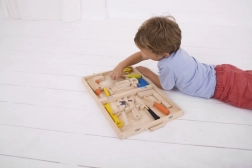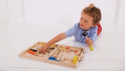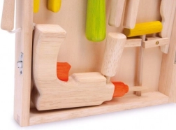 Kiváló fa szerszámkészlet bőrönddel minden fiatal barkácsrajongónak, akik szeretnék fejleszteni kézműves készségeiket. Kalapácsot, fogót, fúrót és csavarkulcsot tartalmaz, minden kiváló minőségű anyagokból.