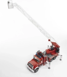 A modell átgondolt funkciókkal örvendeztet meg: nyitható fülke, lehajtható külső tükrök, ütésálló polikarbonátból készült szélvédő és lehetőség benézni a motorháztető alá. A puha, mintázott gumiabroncsok bármilyen tereppel megbirkóznak, a létrakosár pedig tömlőtartóval és felcsévélővel rendelkezik oldalsó tekerő segítségével. A Bworld figurákkal való kompatibilitás tovább bővíti a játék lehetőségeit.