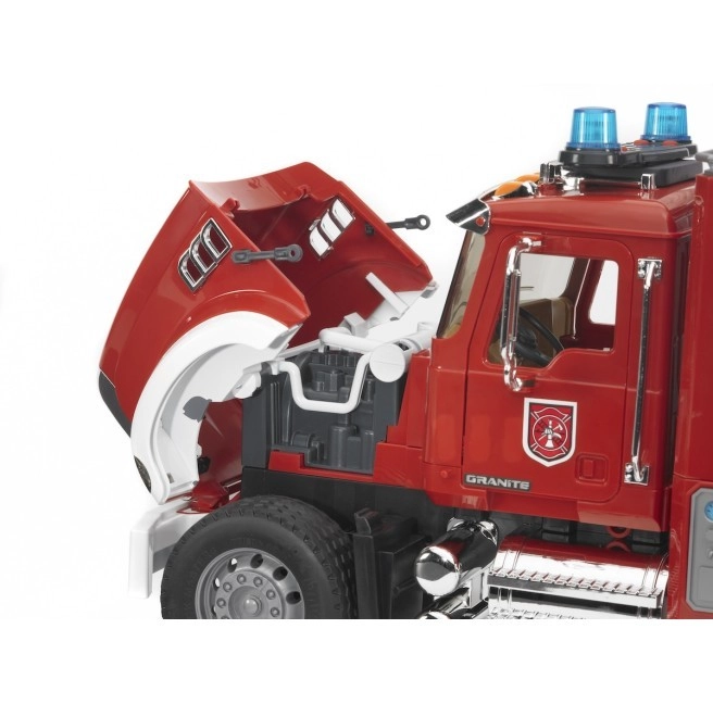 Éld át az akciót, mint az igazi tűzoltók! A részletgazdag BRUDER MACK Granite modell teljesen működő vízfecskendőt és akár 120 cm-ig kihúzható létrát kínál, amely 360°-ban forgatható. A stabilizáló támaszok biztos alapot adnak a „bevetéshez”, míg a szirénával felszerelt fényhíd (BR2801) még hitelesebbé teszi a játékot.