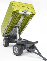 Ez a részletgazdag FLIEGL utánfutó ideális kiegészítő a BRUDER 3000-es sorozatú traktoraihoz. Az elülső részen található kapcsolóval könnyedén kiválasztható a billentés iránya – hátra, balra vagy jobbra. Oldalirányú billentésnél az oldalfalak nyithatók, a magasító felépítmények pedig igény szerint eltávolíthatók.