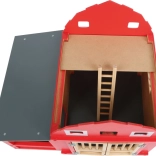 A négy különálló tetőelem egyszerűen felnyitható, így a gyerekek kényelmesen elérik a pajta minden zugát, és kedvük szerint alakíthatják a belsőt.