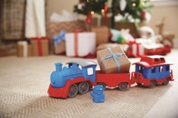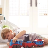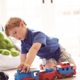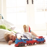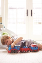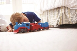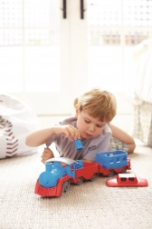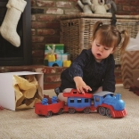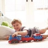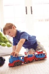 Felszállásra kész! A Green Toys robusztus vonata mozdonyból és két kocsiból áll, és kreatív játékot kínál otthon és a szabadban egyaránt. 100% újrahasznosított műanyagból készül tejespalackokból, nem tartalmaz BPA-t, PVC-t vagy ftalátokat, és nincs fém tengelye vagy külső festése. A készlethez két medve kalauz is tartozik, és minden elem könnyen szétkapcsolható és tisztítható a mosogatógépben.
