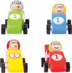 Színpompás fa versenyautók remek választás az autók iránt rajongó kicsiknek, felhúzható funkcióval szórakoztató gurulást kínálnak. Masszív kialakításuk biztosítja a biztonságot és a hosszú élettartamot.