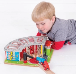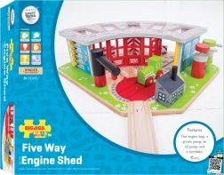 A fa depó öt különböző mozdony számára lett tervezve, és tartalmaz egy működő forgózsámolyt, amely lehetővé teszi a vonatok könnyű mozgását a különböző garázsok között. A rendszer tartalmaz nyitható ajtókat és egy töltőállomást, ami hozzájárul a valósághű játékélményhez.