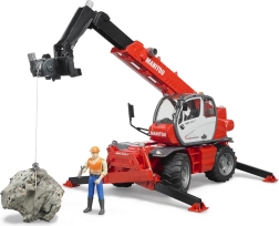 Ez a sokoldalú, 1:16 méretarányú teleszkópos rakodó hűen idézi a valódi MANITOU gépet. A gyerekek valósághű játékélményt kapnak a működő gémnek, a kihúzható támaszoknak és a forgatható fülkének köszönhetően. A masszív műanyag kivitel ideális a mindennapos beltéri és kültéri játékhoz.