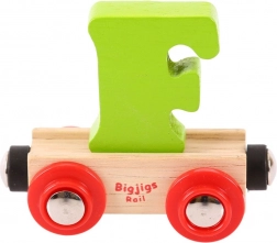 A Bigjigs Rail kocsija F betűvel a színes és kreatív fa vasúti sorozat része. Minden betű levehető és cserélhető másra, lehetővé téve a gyermekek számára, hogy saját neveket vagy üzeneteket alkossanak. Oktatási játék, amely támogatja a képzelet, a kézügyesség és a koordináció fejlesztését, minőségi, felelősségteljesen beszerzett természetes anyagokból készült. A mágneses csatlakozók biztosítják a kompatibilitást a többi Bigjigs Rail kocsikkal és mozdonyokkal, valamint más fa vasutakkal.
