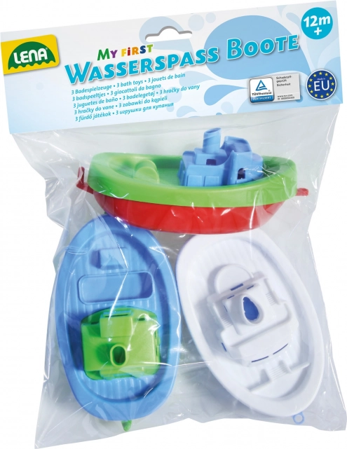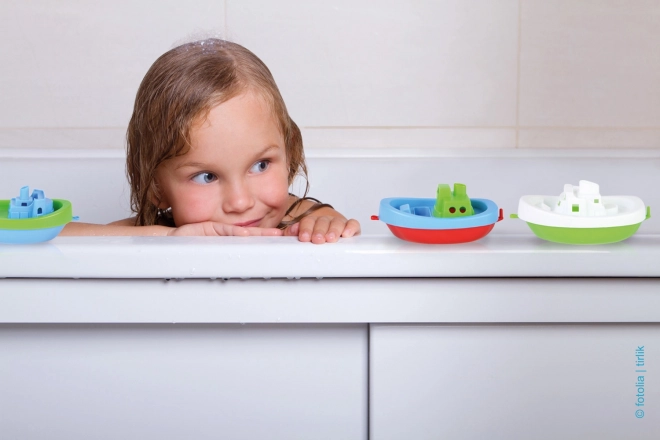 A három színes csónak úszik, és használható a kádban, a medencében és szárazföldön is. Az egyszerű forma és az élénk színek játékra csábítanak.