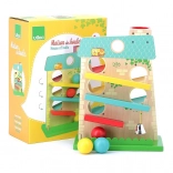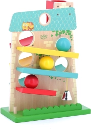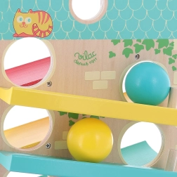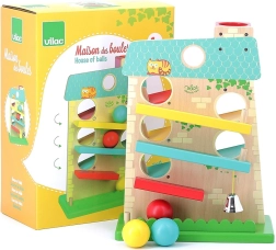A VILAC fa kaszkádos golyóháza vidám golyófutamával és tetszetős dizájnjával elbűvöli a kicsiket. 3 rámpát kínál mindkét oldalon, amelyeken a fa golyók felülről lefelé gurulnak, és a célba érve megszólal egy fém csengő. A pasztellszínekben pompázó játék fejleszti a kézügyességet és a logikus gondolkodást, és órákon át tartó örömteli játékot biztosít.