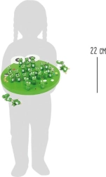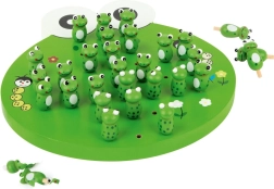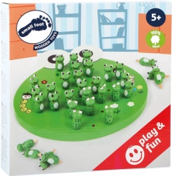 A small foot béka alakú, fa gyermek szoliter logikai játék klasszikus szórakozást kínál bájos kivitelben. A cél, hogy ugrásokkal eltávolítsd a békákat, és a lehető legkevesebb bábu maradjon a táblán. Fejleszti a logikus gondolkodást, a koncentrációt és a stratégiai tervezést. Kompakt mérete utazáshoz is remek, strapabíró fa kivitele és színes dizájnja pedig a gyerekeknek és a szülőknek egyaránt örömet okoz.